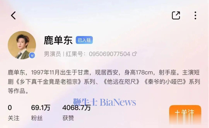 据红果平台尊府高慢,鹿单东建树于1997年11月,主演《乡下真令嫒竟是老祖先》系列、《他远在目下》《秦爷的小哑巴》系列等作品,干系短剧共34部。