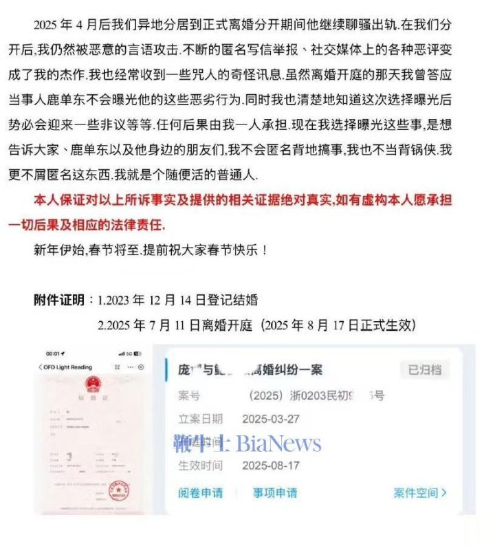 开云官方体育app 领证6天就家暴、出轨! 短剧顶流鹿单东被前妻长文爆料