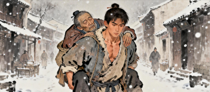 陈默蹲下去探了探鼻息,还有气,只是微弱得很。他想起了小时候自己挨饿的滋味,那种抓心挠肝的感觉,一辈子也忘不了。这大冷天的,要是不管他,等雪再下大点,这人非冻死在这巷子里不可。