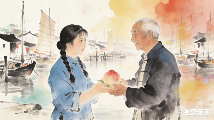 出发前,秀儿把刚蒸好的寿桃塞进他怀里:“带着它,海神会保佑你。”