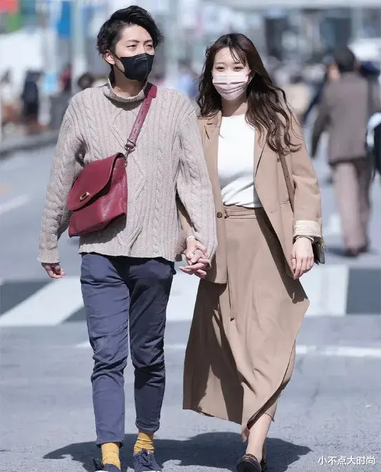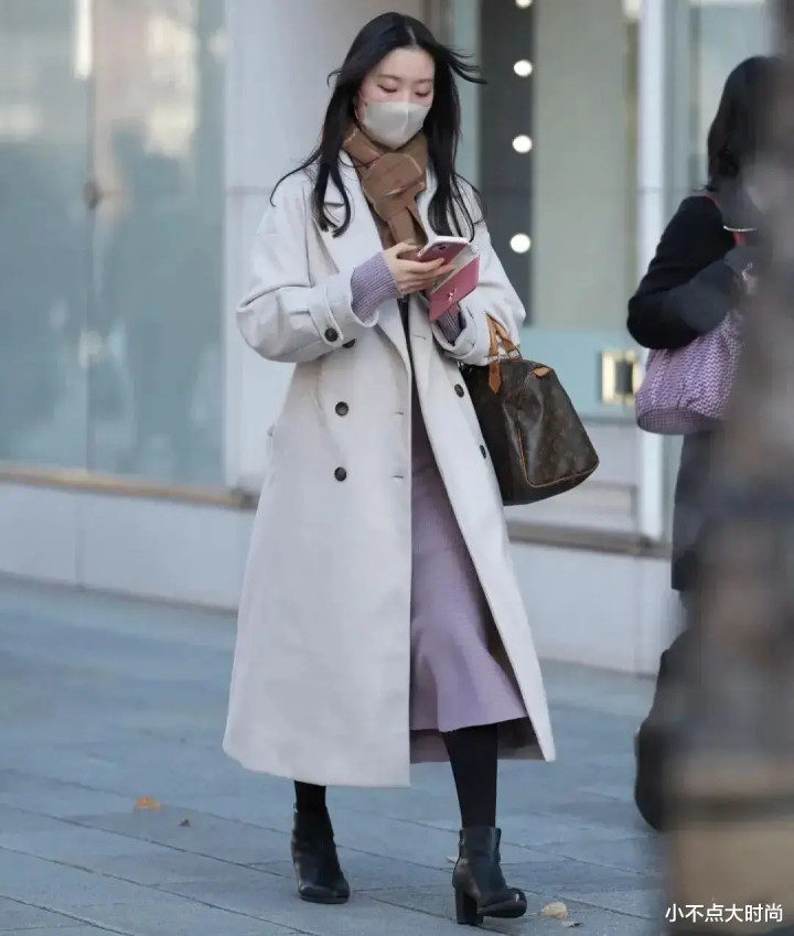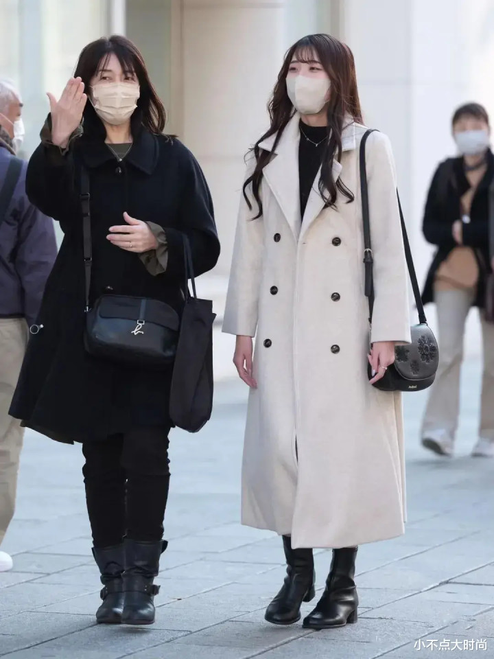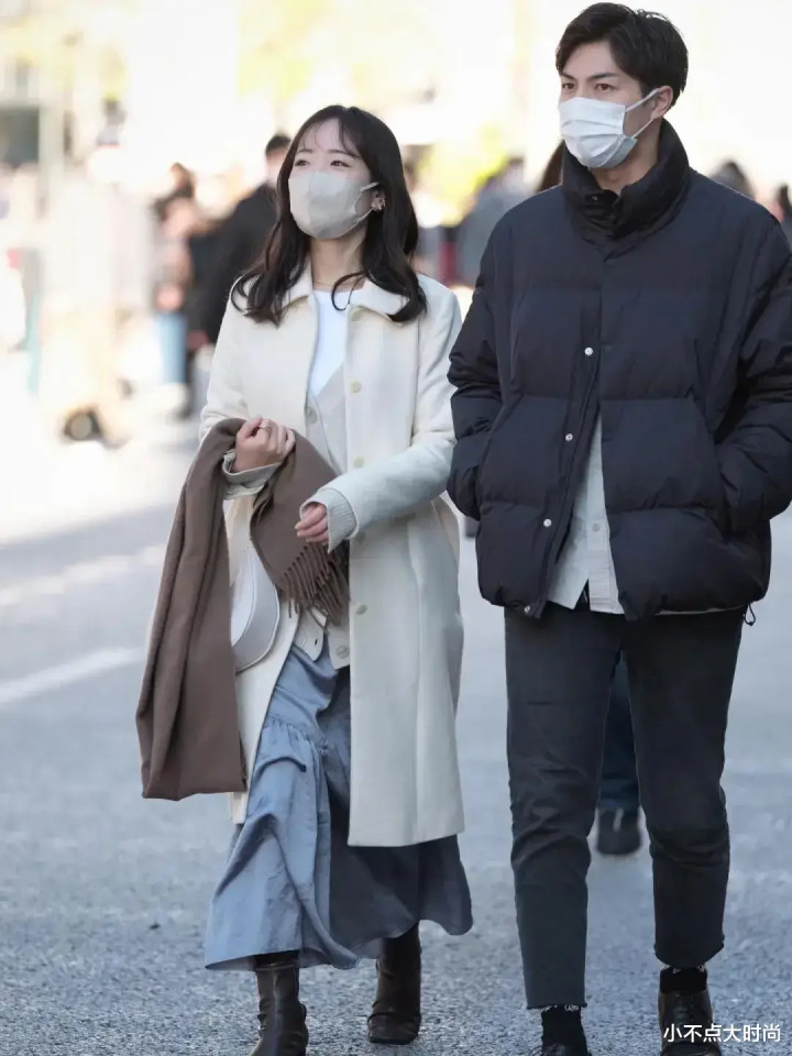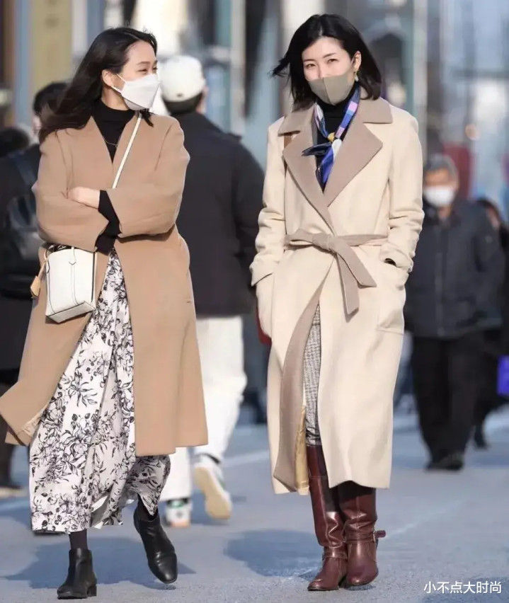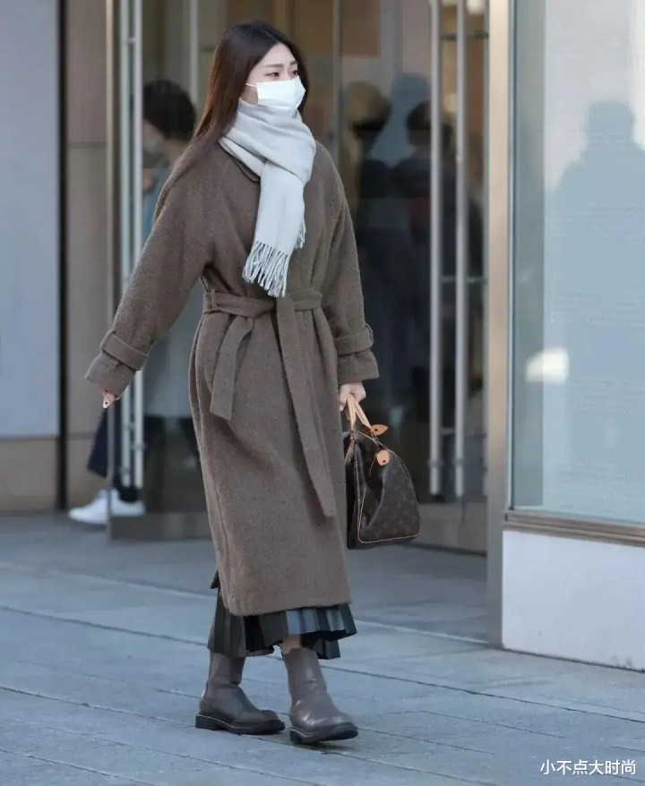 很多日本街头的冬季穿搭中,冬天很喜欢穿长款,即便是矮个子也一样,穿长款不仅不压身高,反而更显高、优雅。比如日本矮个子喜欢穿长款大衣,几乎人手必备长款大衣,选择好合身的款式、不超过脚踝的长度,再加一条腰带,整体就很显高了,大方气质,日常又端庄。▼