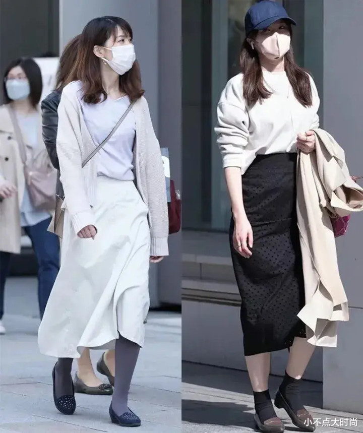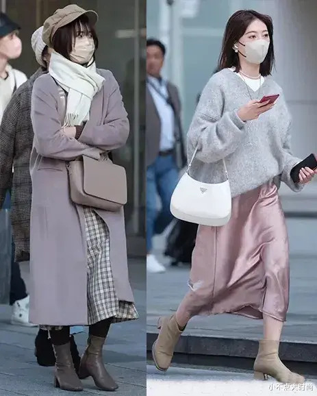 日本街拍中,包括矮个子,大多喜欢穿长裙多于短裙,只要选择好高腰款、长度在膝盖以下、脚踝以上、小腿肚附近的长裙,几乎不会踩坑。冬天的穿搭中,长裙会更优雅有气质,也会更保暖、包容腿型。▼
