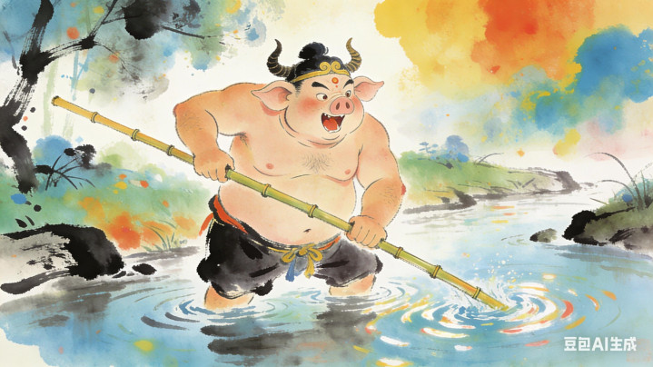 老根眯眼一看,竟是个黑影在浅水里打滚,仔细一瞧,天哪,那不是天蓬元帅的模样吗?