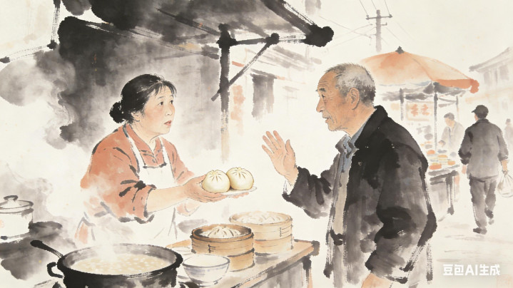 摊主是退休语文老师老周,头发白得像霜打,背驼得快贴到地面,可手里的长柄勺却稳得很。