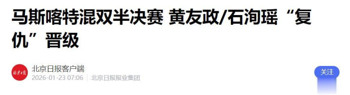 北京日报——马斯喀特混双半决赛 黄友政/石洵瑶“复仇”晋级