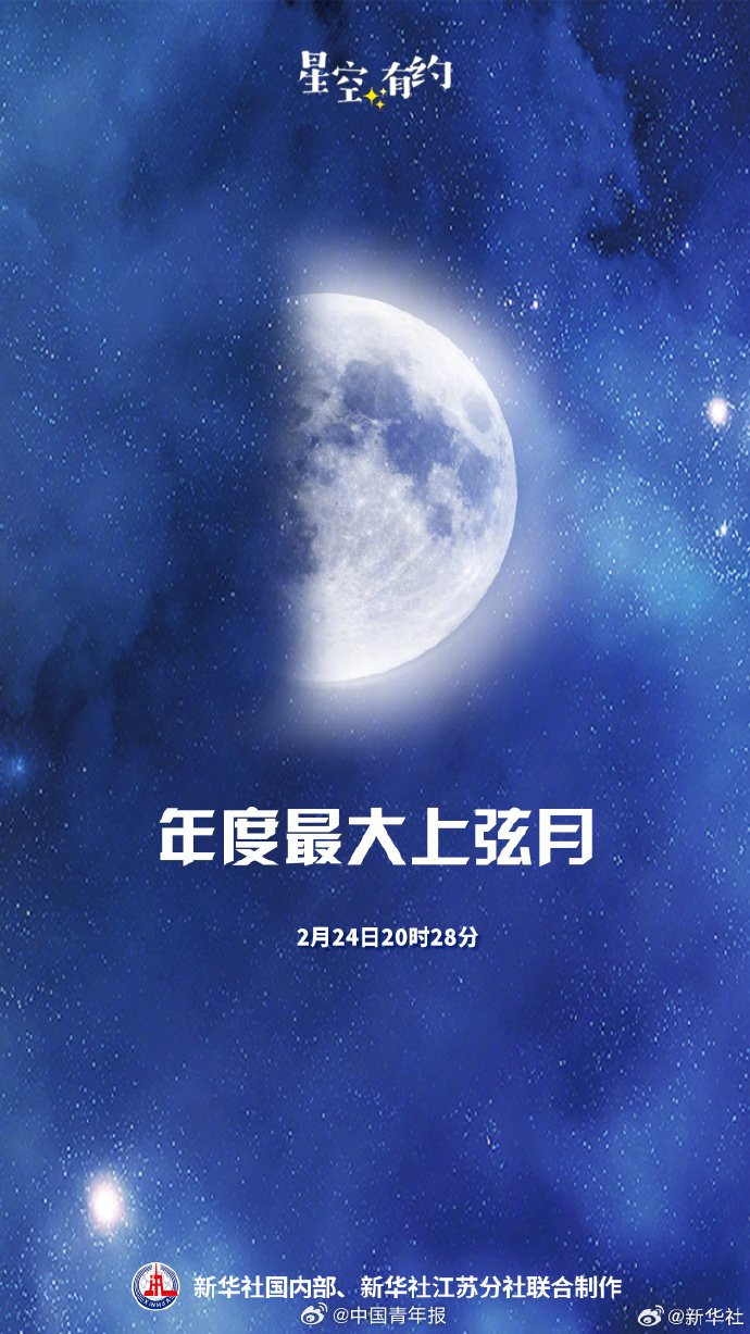 [#24日将迎年度最大上弦月#]2月24日20时28分将迎来本年最大上弦月。届时,月球位于轨谈近所在隔壁,一分彩开云app距离地球约37万公里,这轮“半遮面”的上弦月将成为亮眼的天象景不雅。公众无需借助专科建立,仅凭肉眼即可观赏。(新华社)