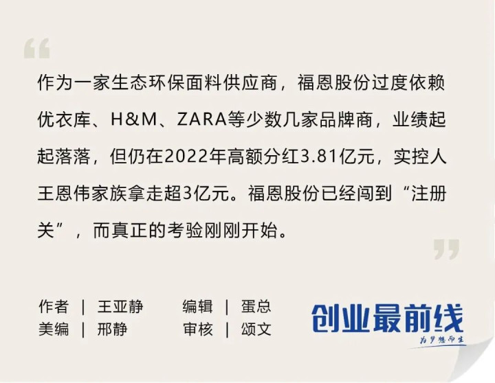 开云体育app 深度绑定优衣库、H&M, 福恩股份闯IPO: 王恩伟家族一年拿超3亿分红