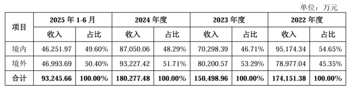福恩股份明确表示,公司再生面料产品主要面向海外市场。于报告期内,公司的境外销售收入分别为7.90亿元、8.02亿元、9.32亿元和4.70亿元,占主营业务收入的比例为45.35%、53.29%、51.71%和50.40%。