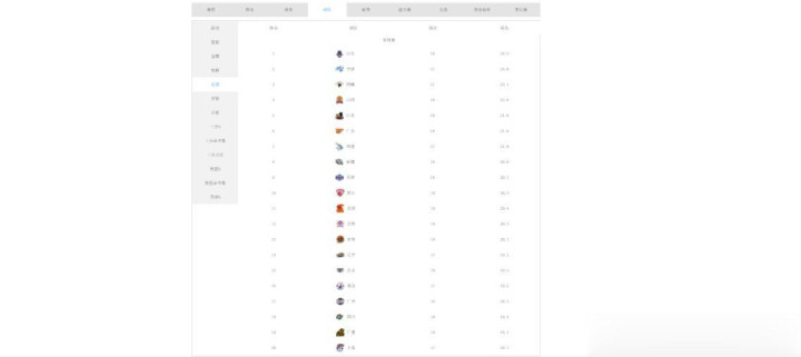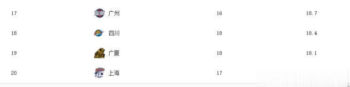 第4名-第16名分别是山西男篮(22.8次)、广东男篮(21.9次)、江苏男篮(21.9次)、福建队(21.8次)、新疆(20.9次)、天津(20.7次)、浙江(20.5次)、深圳(20.4次)、北控(20.3次)、吉林(20.1次)、辽篮(19.7次)、北京(19.5次)、青岛(19.2次)。