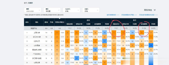 截至CBA25-26赛季第18轮(部分球队可能少赛或多赛一场),各队场均犯规数据如下: