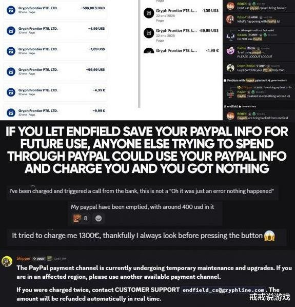 各位终末地的管理员,大家好。今天咱们不谈配队攻略,也不聊基建心得,得来说说一件让所有玩家都笑不出来,甚至可能背后发凉的“赛博灵异事件”。就在昨天,《明日方舟:终末地》全球公测的喜悦还没完全散去,其海外服务器就爆出了一个堪称“史诗级”的支付BUG,把不少国际友人直接送上了“经济斩杀线”。简单说就是:玩家在游戏内绑定PayPal后,账户里的钱可能会被随机、无征兆地扣走,用于支付其他陌生玩家的充值。