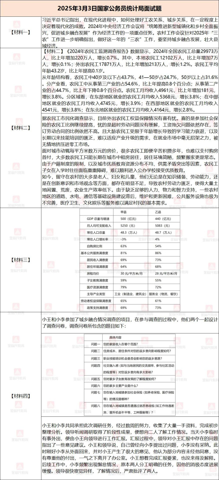 1、2019年分为上下午各一套;2022年、2023年面试时间持续2天,每天一套题目,每套4道题;统计局2024年、2025年面试时间持续3天,每天一套题目;值得注意的是2025年3月3日江西出现结构化小组形式,开云官方体育app题目是单独命题,每套5道题。
