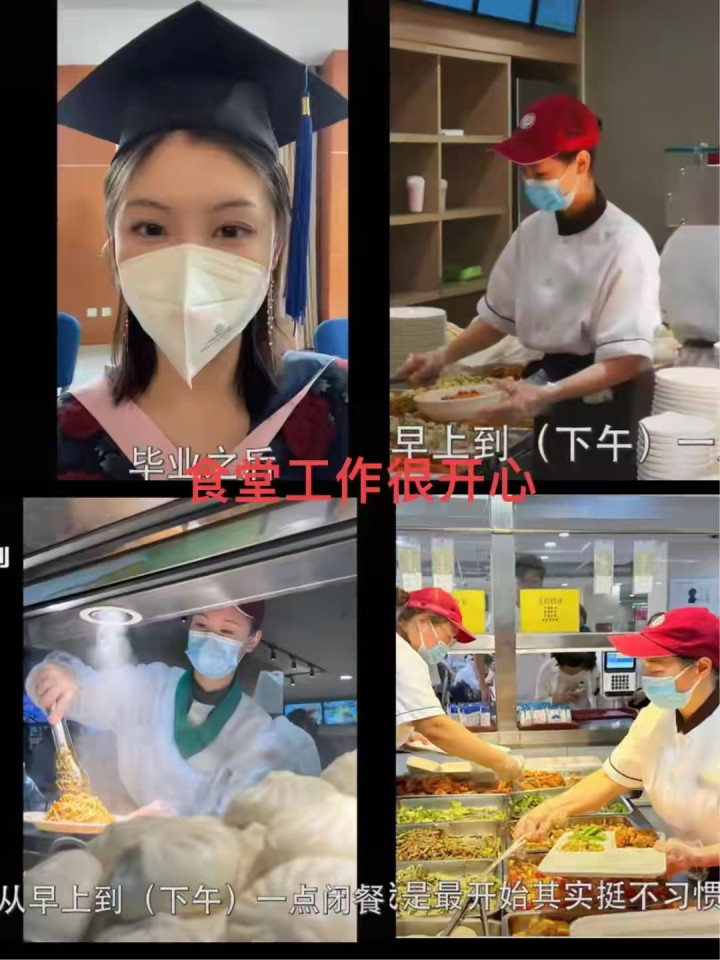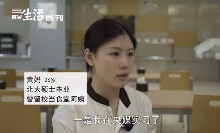 于是在2022年,“黄妈”从北大新闻与传播学院毕业后,她选择报名了北大的食堂管培生,而工作需要轮岗,于是她才主动申请去一线当“打菜阿姨”。