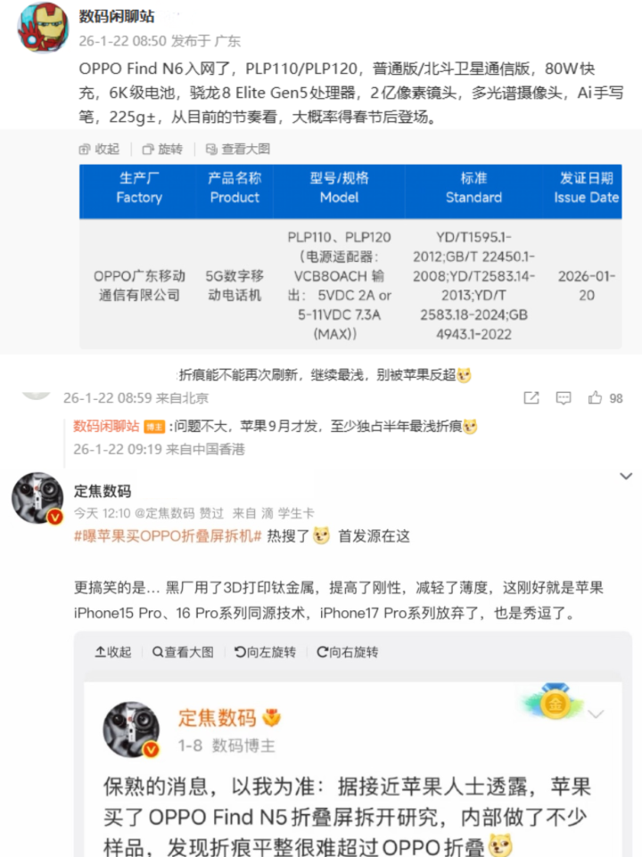 爆出这个消息后,就更期待OPPO Find N6了,首发无折痕然后至少半年独占期?再加上此前曝出来的配置信息,2亿像素+多光谱镜头,骁龙8 Elite Gen5,6000mAh+电池,AI手写笔,你期待吗?