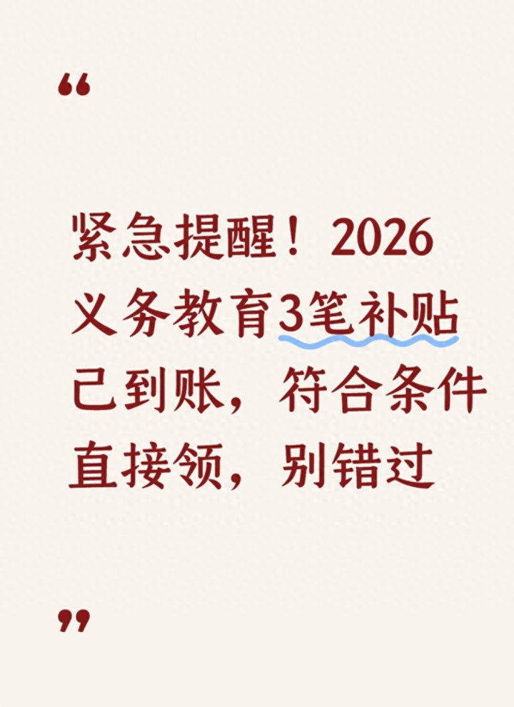 开云官方体育app 紧急提醒! 2026义务教育3笔补贴已到账, 符合条件直接领, 别错过