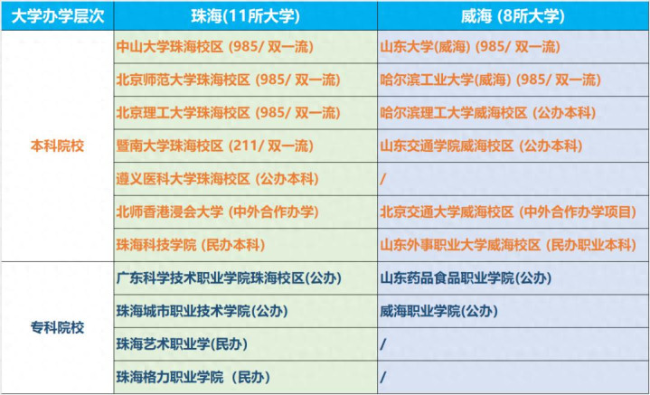 而珠海和威海的多数名校分支机构,要么是“某大学某校区”,要么是“某大学(地名)”,这两种基本等同于本部校区,只是地理位置不同,教学、师资、科研资源都由本部统筹,含金量有保障。
