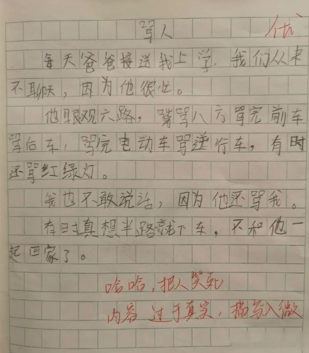 开云官方体育app 小学生作文《骂人》火了, 揭开父亲的另一副面孔, 老师看后笑出声